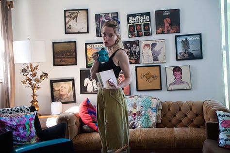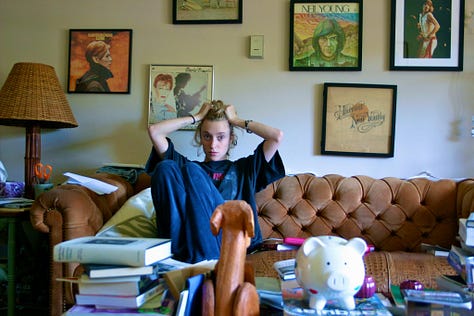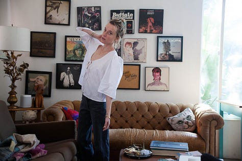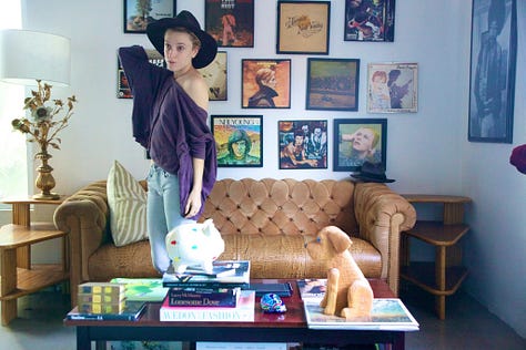 Because a new poet friend writes me about an old poem I wrote one International Women’s Day and says that it knocked the breathe out of her and she had wanted to share it but couldn’t, I start thinking about making my social media public again. (Oh! The irony! I wrote her.) Thinking myself chic for this one stop gap of intimacy. And I go through and start deleting things and I go all the way to the end of my Instagram roll and realize not much has changed except that I have stopped seeking the moon. There I am in my early twenties, reading and writing, and photographing myself in clothes. My hair so painfully long. Such a tease to see. Going through papers in an old box next to my desk, trying to assemble some for publishing, I find a note from my old boyfriend about the self portraits I used to take and would send to him in batches before he also came online. I’m getting a feeling from them that’s better not to try to describe. He says. In the best of them you’re posing effortlessly. In the worst, not so effortlessly. But I like that. In some of them you are being honest with yourself, while in others, you’re lying to yourself. And where and what you have in your living room is perfect. You could design the interiors of people’s homes. Also aesthetically you should try toning the red and yellows out of the brighter photographs and tone the blue down in the darker ones. What are you going to do with this project? He wrote. And it made me laugh. Because I had forgotten about our old easy intimacy, before the friendship frayed and the lives we chose made us strangers. And it is funny that I always forget he is a director. Though I was mad at him for years for not casting me in a short film of his, choosing our beautiful friend instead. And it was nice for a moment to be thrown back into 2010. To remember being so new in sobriety and Los Angeles again. And I ended up doing this self portrait practice for 11 years and then through 7 months of my pregnancy, ending it without any sort of farewell, and that truly the best of them were the first ones, when I was trying to figure out what I was doing with them, in my place on Bay Street and then the two apartments on Hyperion, and then the house on Morton Avenue. How the project changed. And how I miss doing it. Now I just take pictures of myself in the morning in the bedroom mirror.